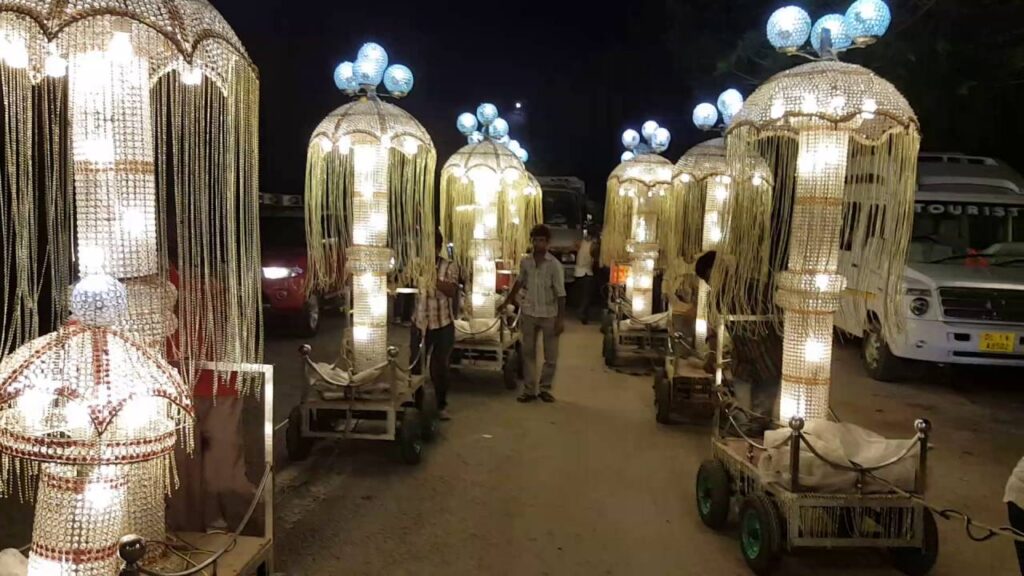 Lights add that charisma to a wedding procession. Your Baraat needs to stand out and shine. As you walk with the Baraat, usually after sunset, what attracts attention and adds that ambience of a wedding processions are the lights. Hire Sudhir Band to offer you custom lighting solutions for your Baraat.